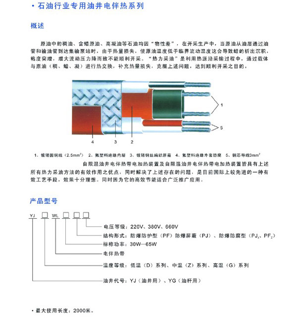 石油行業(yè)專用油井電伴熱帶